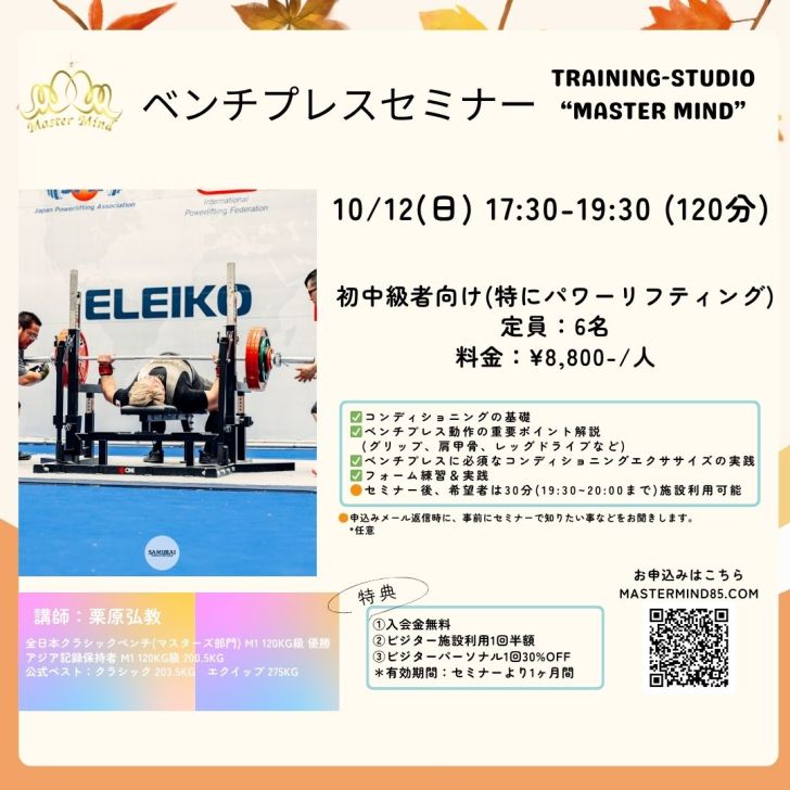 ベンチプレスセミナー開催のお知らせ