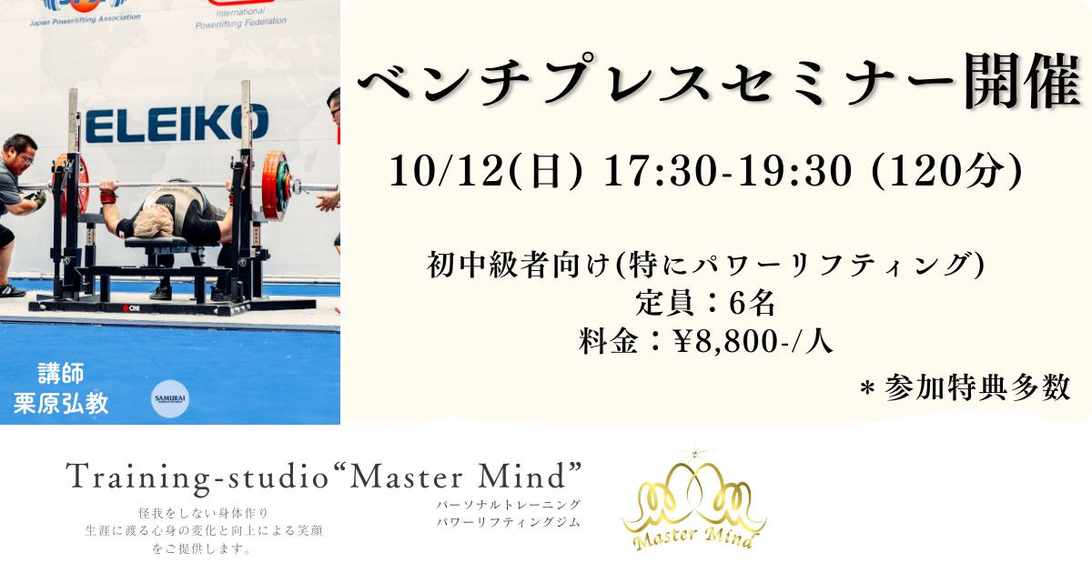 ベンチプレスセミナー開催のお知らせ